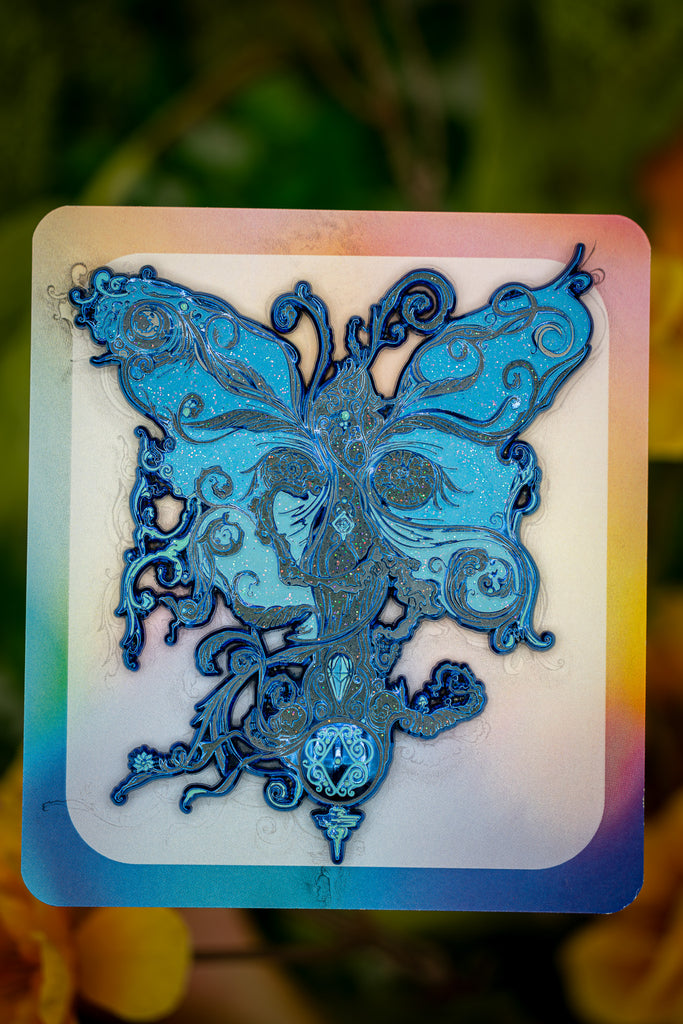 Second from Left: LE 25 - (Blue Morpho: Blue Metallic w/ Glitter & Glow) - $55