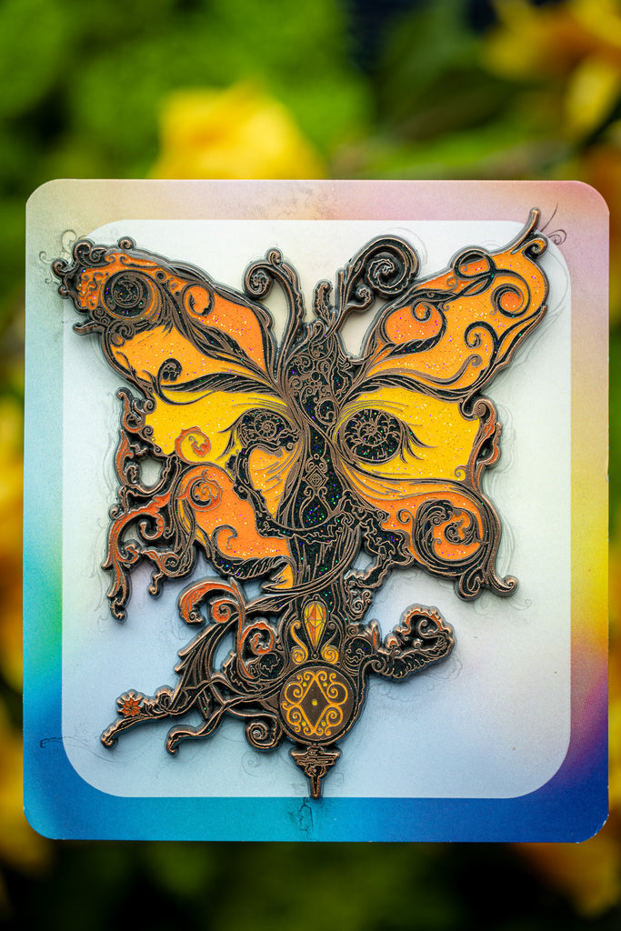 Left: LE 25 - (Zebra Swallowtail: Gold w/ Glitter & Glow) - $55